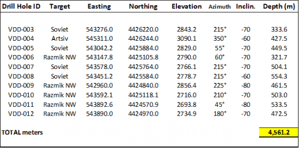 The 2025 Phase 2 drill campaign was designed to test both surface geochemical anomalies and geophysical targets identified through audio magnetotelluric (AMT) and induced polarization (IP) surveys conducted over the past 15 months. Drill holes were located in the northern section of the Vardenis permit area, within the Soviet, Razmik, and Artsiv prospects (see Figures 1 and 2). The current drill program follows from the Phase 1 program comprising 770 meters undertaken in 2023 (see news release dated November 14, 2023).